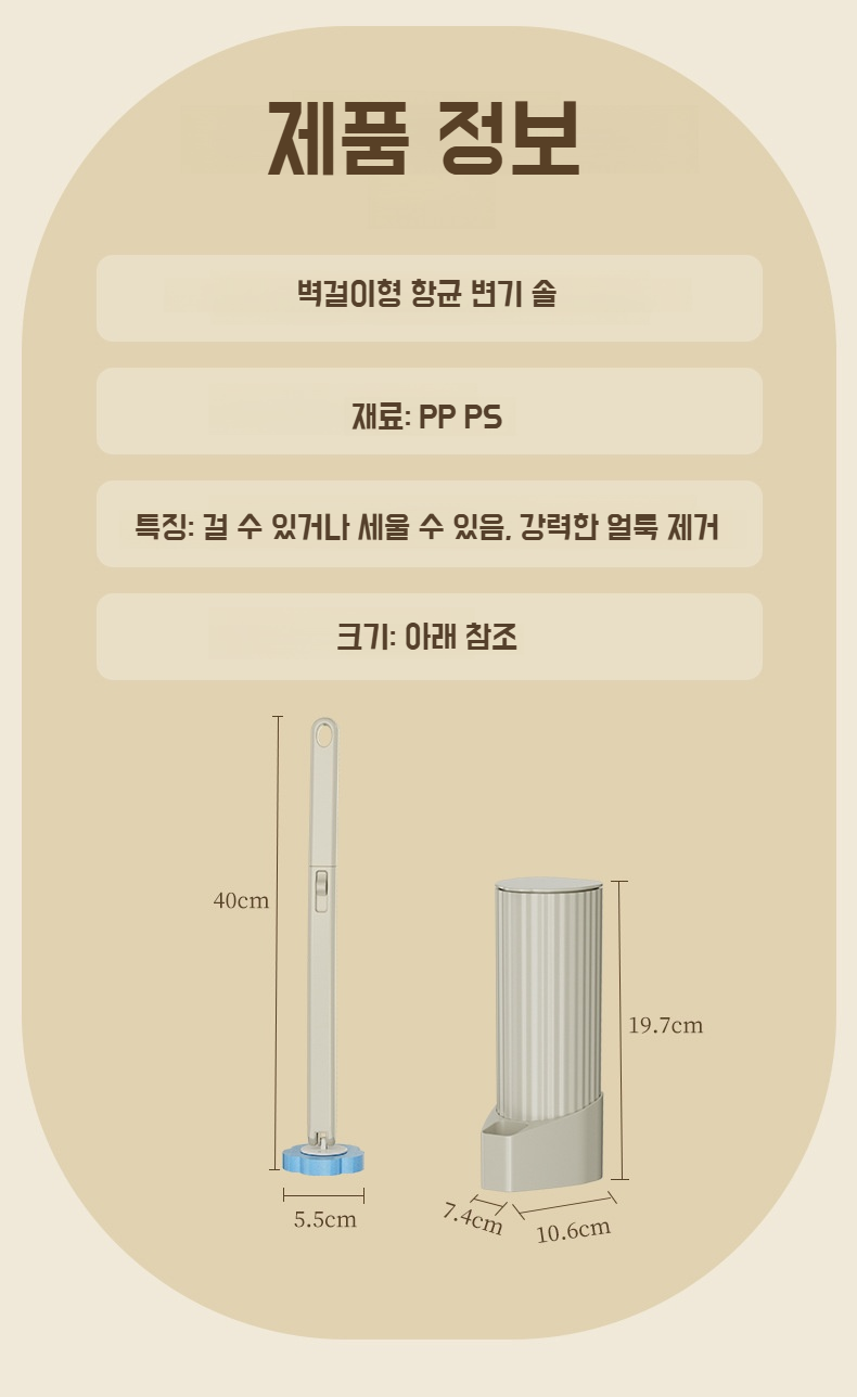 ● 사각형 디자인과 강력한 브러시모로 변기 구석구석까지 얼룩과 찌든 때를 효과적으로 제거해줍니다.
